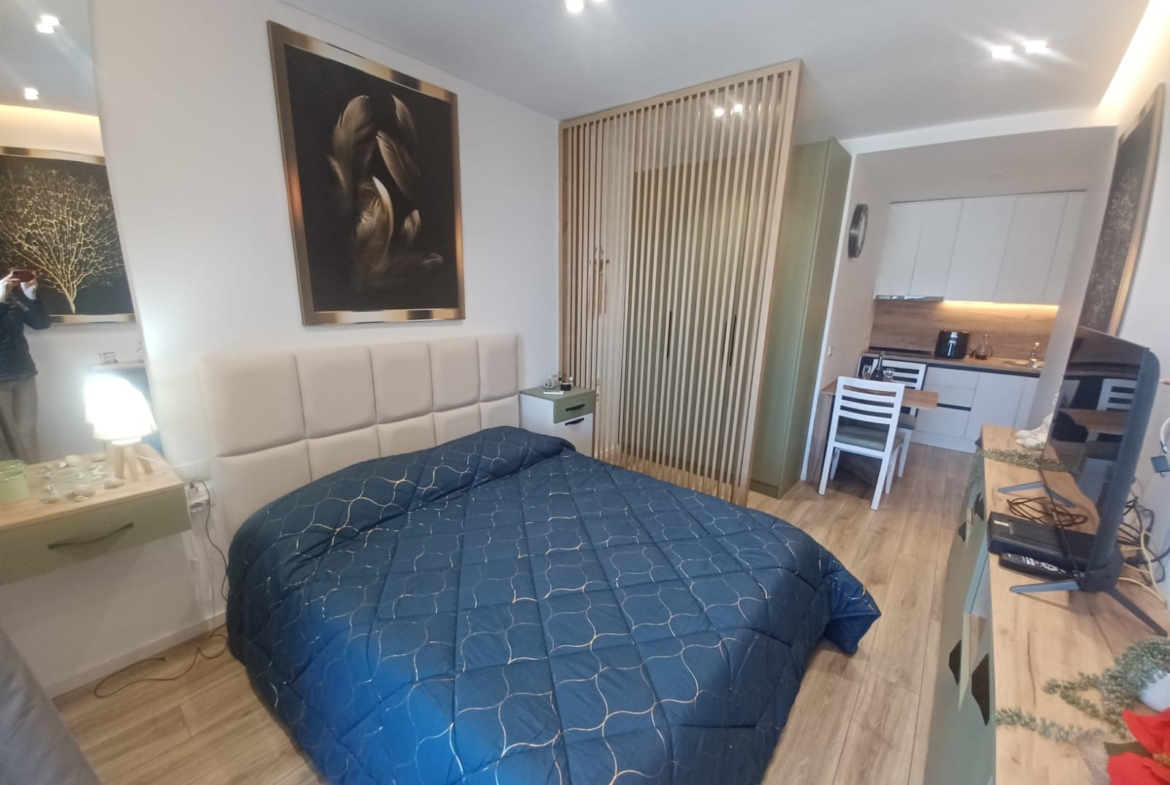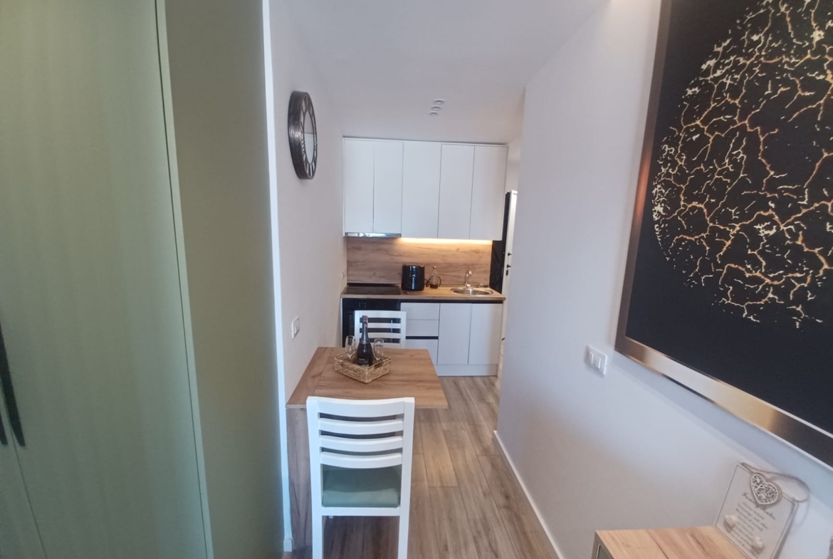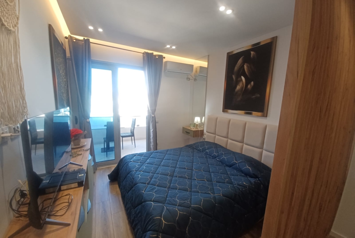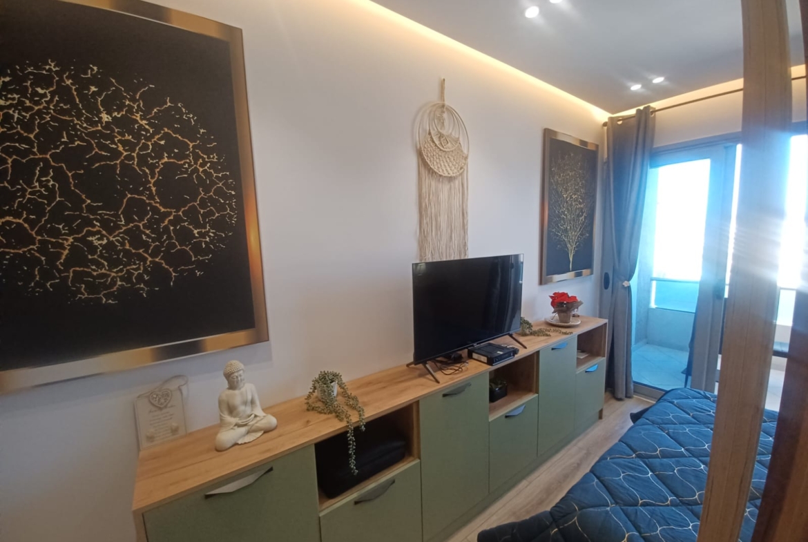 40 sq m apartment on the 12th and top floor with sea and city views. Centrally located, 500 meters from the beach. Located on one of Vlora’s best streets, with all amenities. Excellent condominium. Clean, well-maintained, with CCTV cameras and a 24-hour manager.